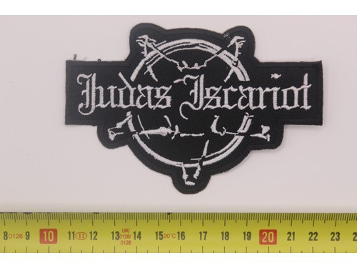 OverviewSHAPED EMBROIDERED PATCH JUDAS ISCARIOT - WHITE NAME LOGO + PENTAGRAM